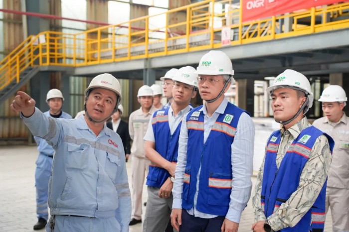 近日,中國駐印度尼西亞大使王魯彤一行來到中偉印尼莫羅瓦利產業基地考察調研。中偉鼎興總經理陳建兵、中青新能源常務副總經理張云鵬等領導陪同參觀,雙方在生產現場深入交流,就企業運營、技術應用及本地化發展等情況展開溝通。